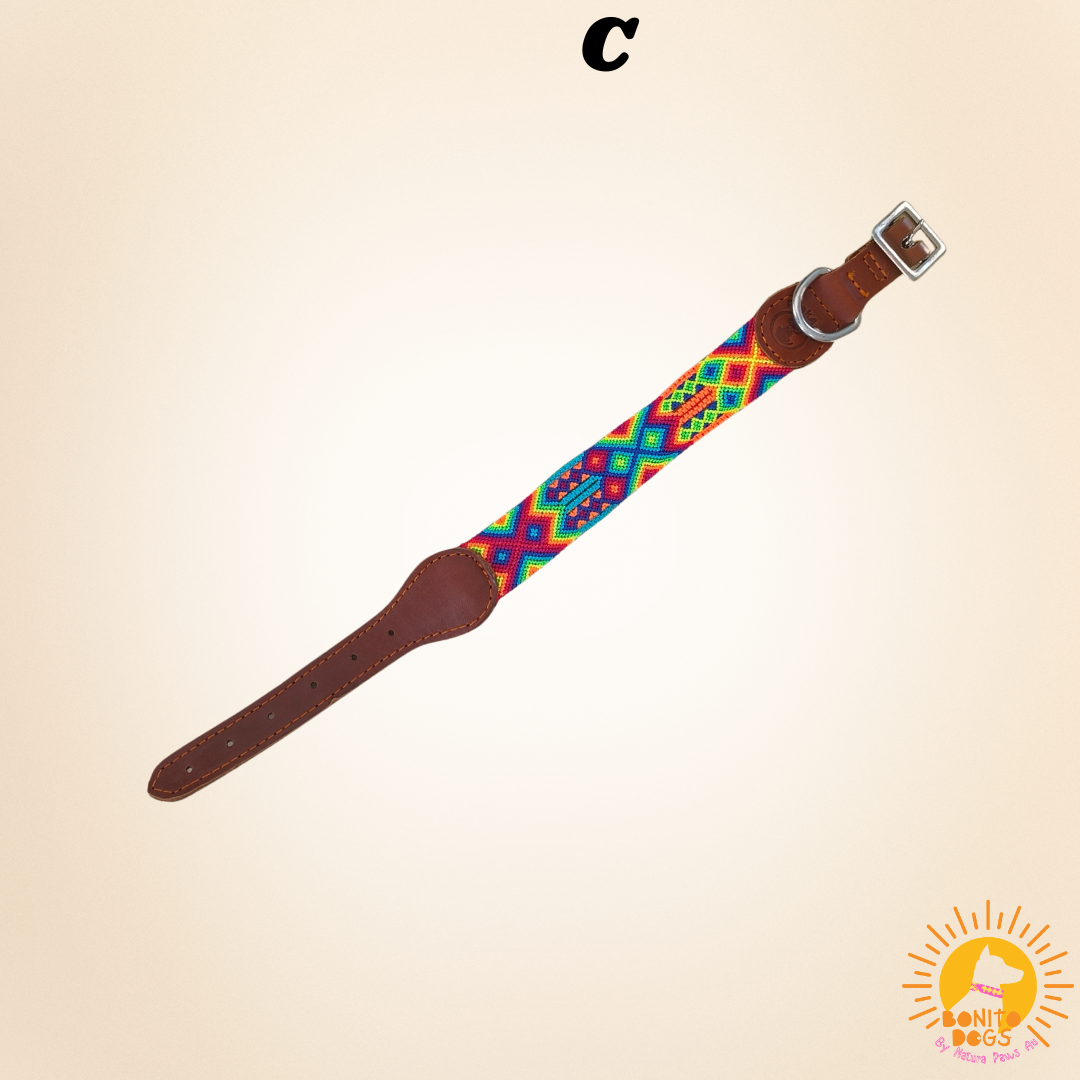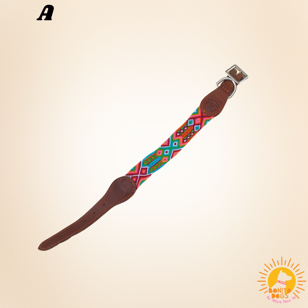 Hand-woven with love in Chiapas, Mexico, this small Mexican leather collar blends authentic artistry with everyday strength. The intricate weaving is fair-trade, created by skilled women artisans using traditional techniques, then finished with durable genuine leather and sturdy metal hardware for lasting comfort.